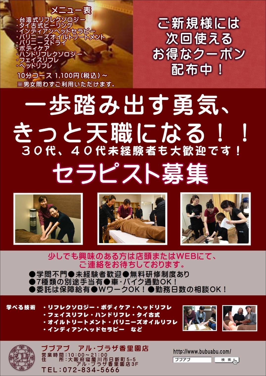 | 募集内容 | セラピスト ご来店頂いたお客様にあったコース提案と施術を行って頂きます。 |